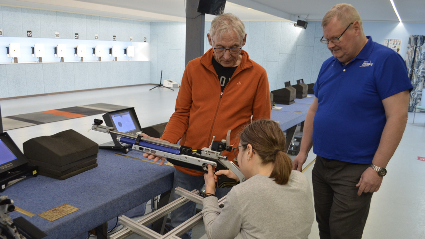 Vid 16-tiden fram till middagen vid kl 18 var det dags att inta Öckerös 25 luftbanor, och utöver träning med hjälp av tränare och funktionärer fanns ”smeden” Leif Danielsson från Värnamo på plats. Leif jobbar ideellt med anpassning av bord och hjälpmedel till skyttar, något som är mycket uppskattat av skyttar och ledare.