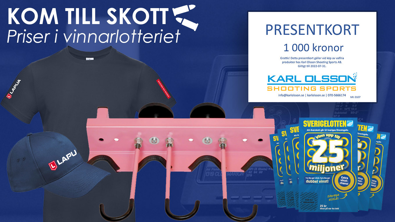 Alla skyttar som lyckas uppnå 100% (eller mer) av den målpoäng, som man själv bestämmer, kvalificerar sig till Kom till skotts vinnarlotteri där vi lottar ut fina priser från våra sponsorer och samarbetspartners. I denna omgång lottar vi ut följande priser: