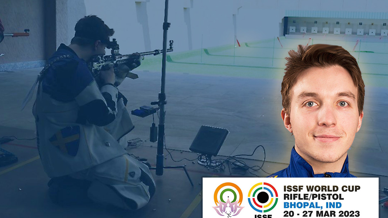 Marcus Madsen är ensam svensk tävlande i Indiens världscup. Han har visat fin form i år och även i denna VC sköt han stabila poäng, som gav 15:e plats i 10 m och tionde placering i 3x20.