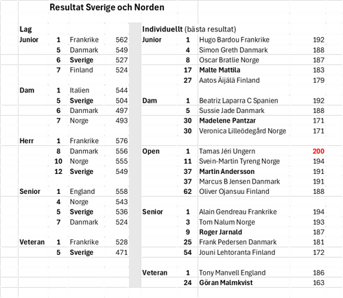 Därutöver deltog 4st ytterligare svenska skyttar, så totalt 19st blågula kämpade om placeringarna bland de 809st startande på detta 21:a Compak VM.