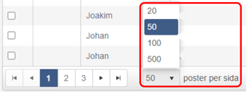 - Sök efter antingen en specifik person eller lämna fältet tomt och klicka på Sök för att få upp en lista över 50 st medlemmar per sida.För att visa fler än 50 st medlemmar per sida ändras detta längst ner: