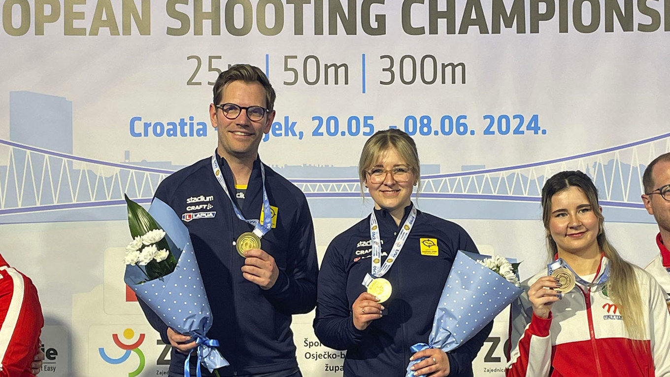 Vi kan glädjas åt två nya svenska medaljer i krut-EM i Osijek och vi är nu uppe i fyra totalt. På förmiddagen säkrade Karl Olsson sin tredje medalj i detta mästerskap genom att bli trea i 300m-grenen standardgevär. Mer om det snart. Och sent på eftermiddagen slog han och Elin till igen i mixed - precis som igår - och blev nu guldmedaljörer även i disciplinen ställningsskytte. Och om ni också räknat rätt nu var det alltså Kalles - och även Sveriges - fjärde EM-medalj under den här veckan i Kroatien.
