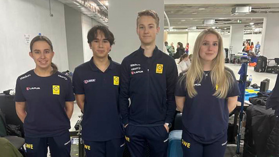 De svenska mixedlagen i luftgevär fr.v: Christina Sideri, Anton Salomonsson; Jesper Johansson och Evelina Nuemann Szilagyi