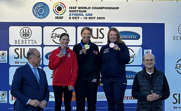 Uppsalaskytten Victoria Larsson avslutade säsongen på bästa sätt genom att ta brons i damernas skeet vid världsmästerskapen i lerduveskytte i Aten, Grekland – hennes andra VM-medalj i karriären.