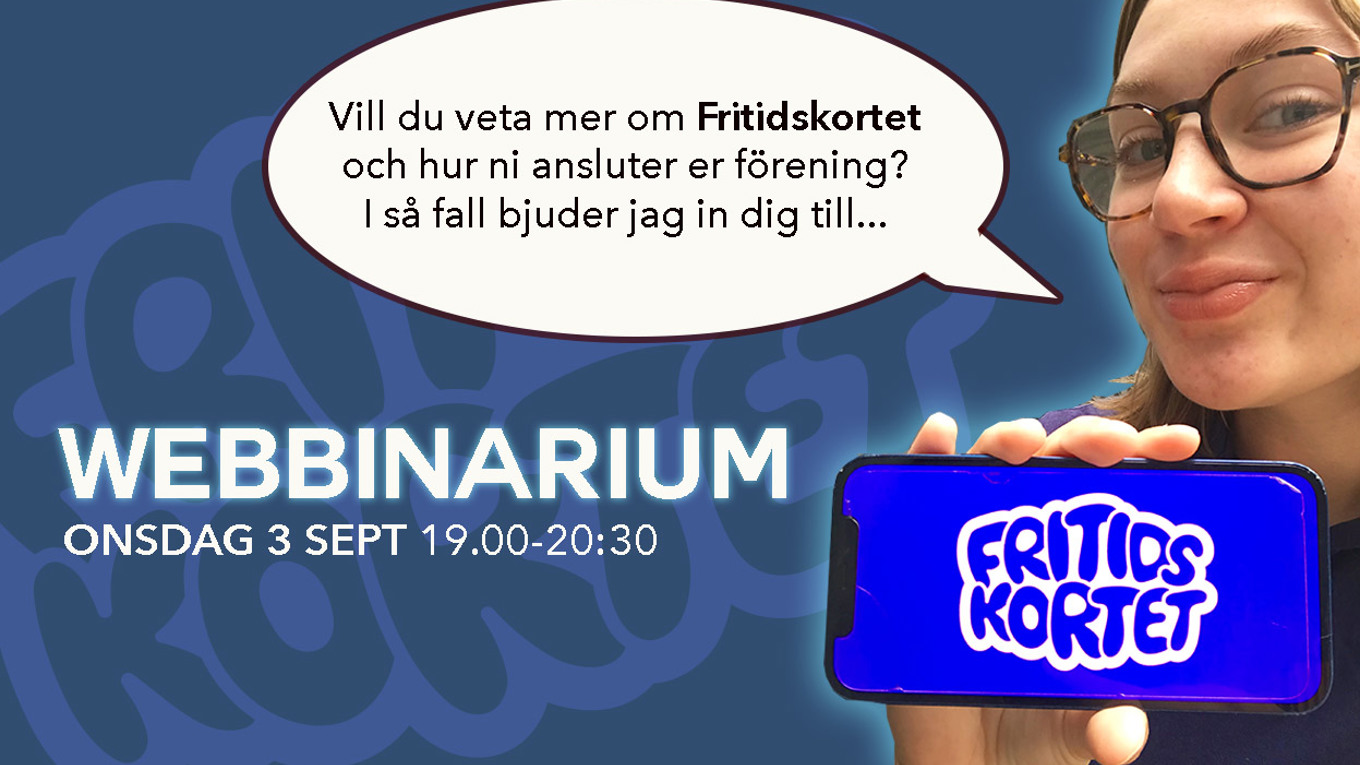 Nu lanseras Fritidskortet. Anmäl dig till vårt kostnadsfria webbinarium 3 september kl. 19.00 och få svar på frågor om vad det innebär för din förening.
