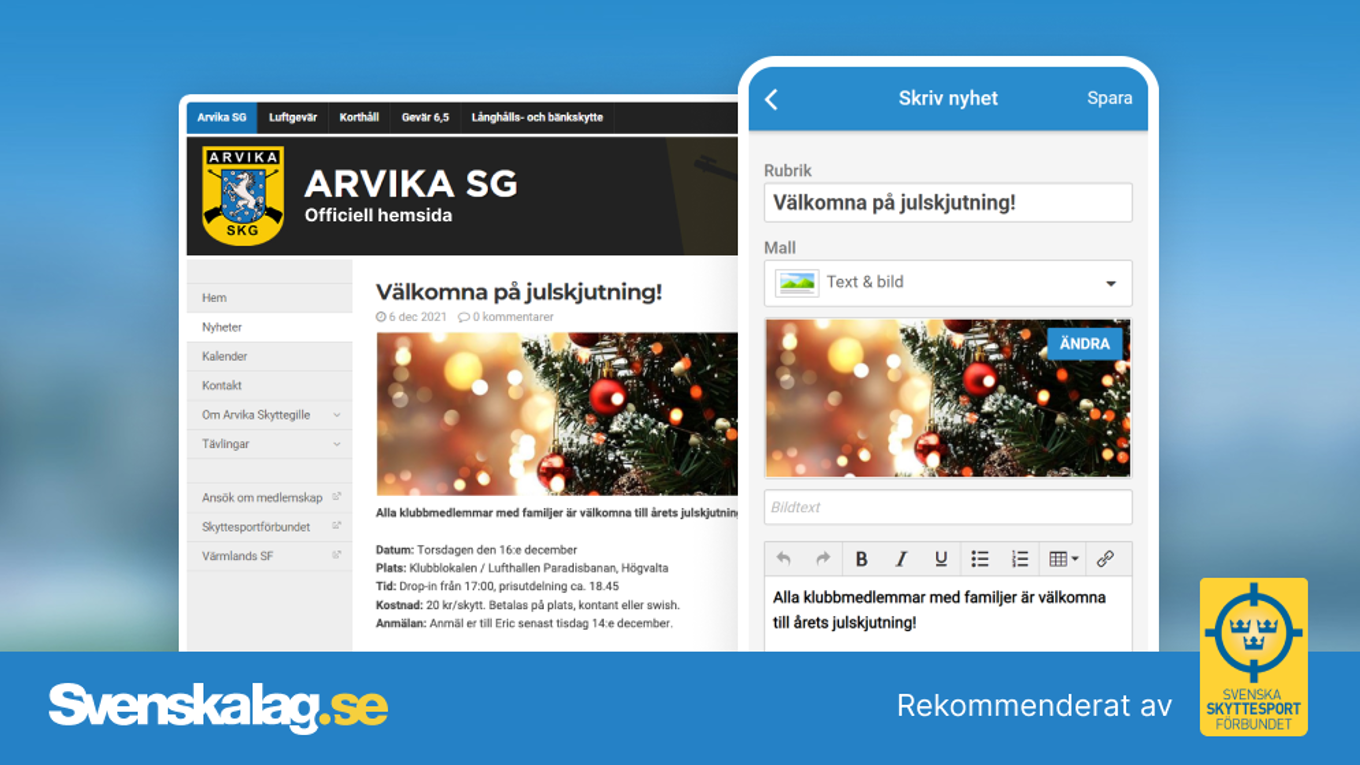I och med att Riksidrottsförbundet (RF) fr.o.m. 1 januari 2023 inte längre kommer erbjuda kostnadsfria hemsidor till föreningar och förbund har Svenska Skyttesportförbundet (SvSF) undersökt olika alternativ och valt att rekommendera Svenskalag.
