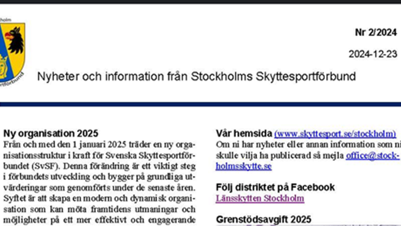 Årets andra och sista nyhetsbrev från Stockholms skyttesportförbund har skickats till distriktets föreningar.