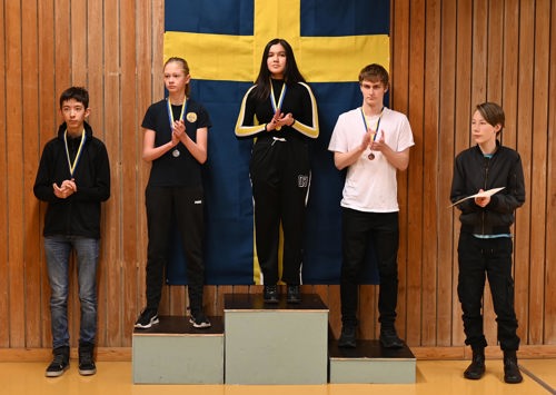 Hilda Trofast Guld, Elias Wikman Silver, Lisa Nyström, Misha Tyfting och Malva Tärnholm Brons, Robin Björkman, Alvin Landstedt och Adina Centervik Diplom och reserver. ( Misha saknas på bild) |